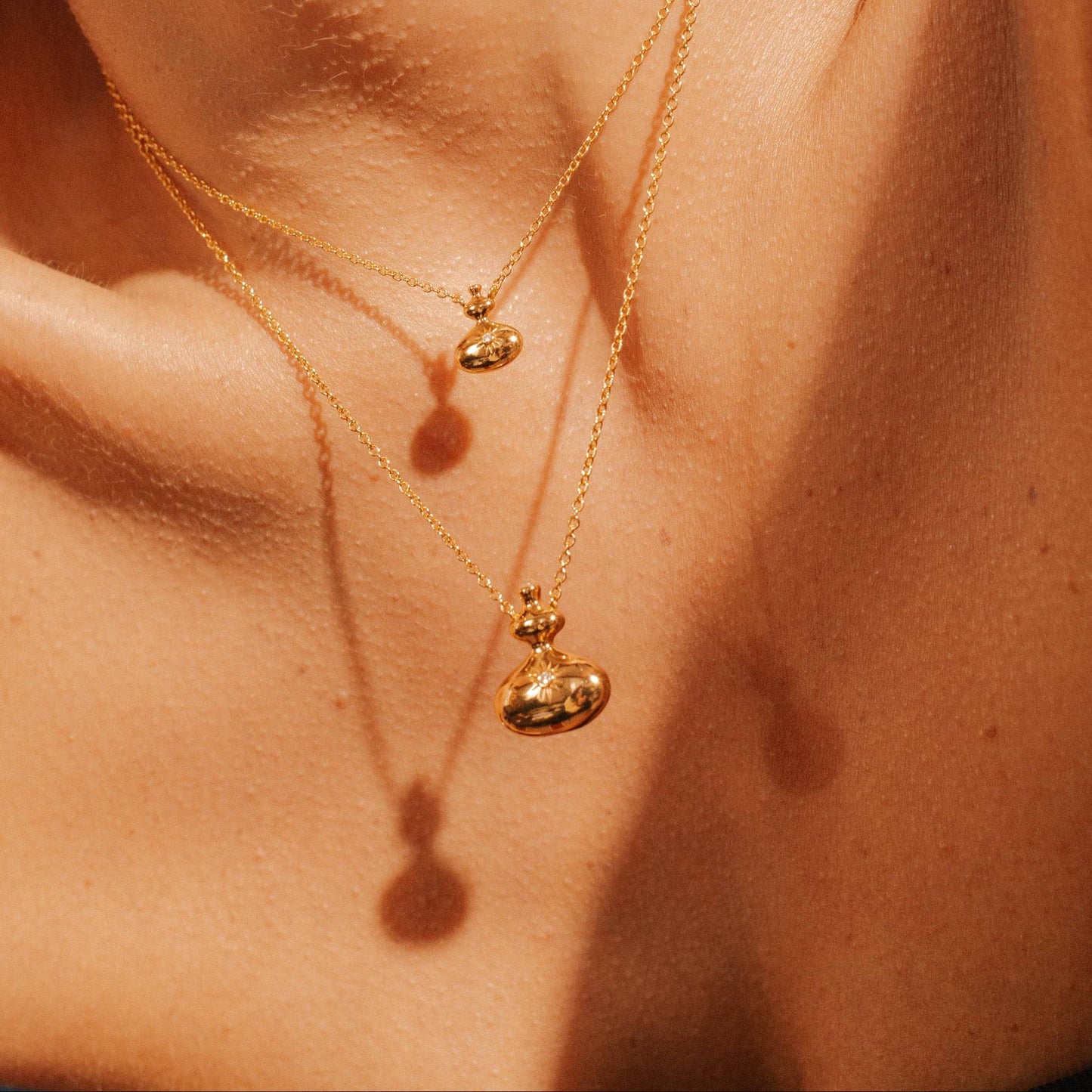 Model wearing BEAMMORE tsavorite 18K gold necklace – Minimal, stackable style