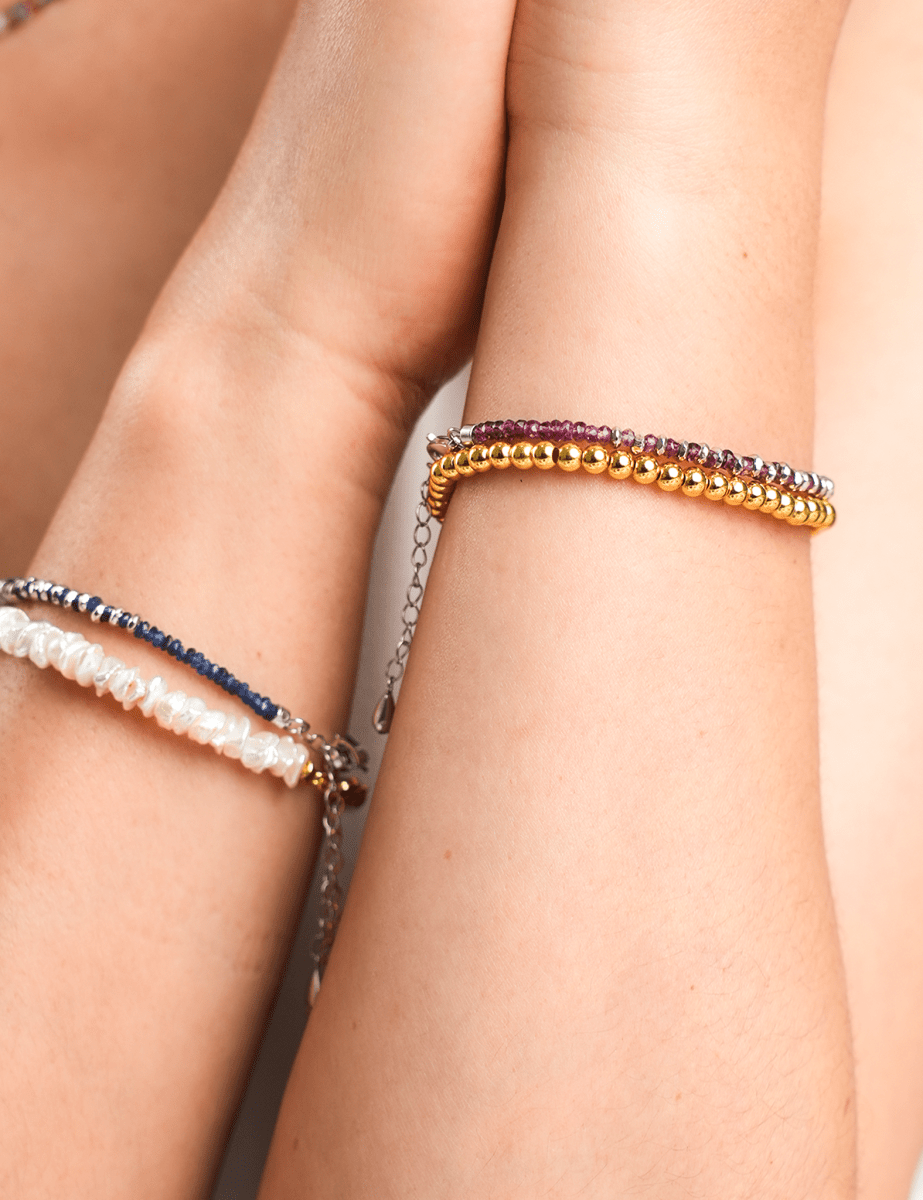 This bracelet brings a sense of harmony with a vibrant mix of purple-red sapphire beads, finished with polished S925 sterling silver beads and clasp for a refined accent.