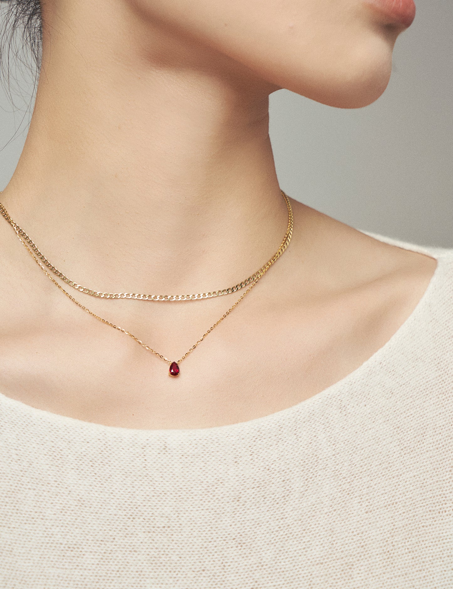Celebrate July with timeless elegance. This necklace features a pear-cut lab-grown ruby (0.70ct) hand-set in gold-plated S925 sterling silver. Its vivid red hue symbolizes passion, love, and strength. Designed for daily wear, it sits gracefully on its own or layers effortlessly with other pieces for a personal, meaningful look.