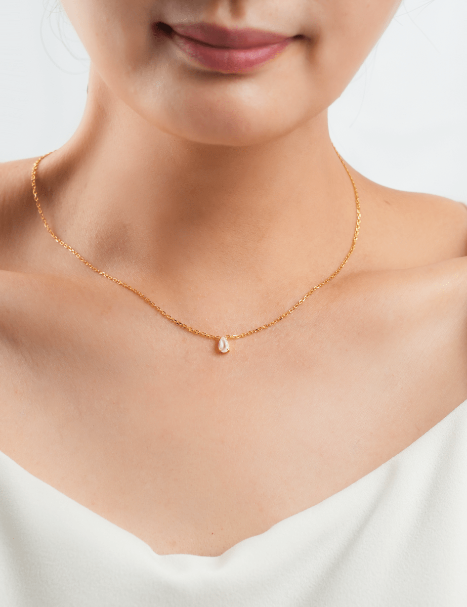 Celebrate June with timeless elegance. This necklace features a pear-cut moonstone (0.35ct) hand-set in gold-plated S925 sterling silver. Its soft glow symbolizes intuition, harmony, and emotional balance. Designed for daily wear, it sits gracefully on its own or layers effortlessly with other pieces for a personal, meaningful look.
