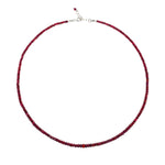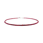 Model showcasing the Love Ruby Faceted Dainty Necklace, highlighting its vibrant red hues and elegant design.