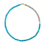 Bold, colorful, and free-spirited. The New York Collection is inspired by over three decades of life in the city that never sleeps, where cultures and stories from around the world converge. Featuring vivid turquoise and luminous graphite moonstone, this design reflects the perfect balance of strength and sensitivity. Just as New York celebrates diversity and self-expression, this necklace honors protection, intuition, and the beauty of living authentically.