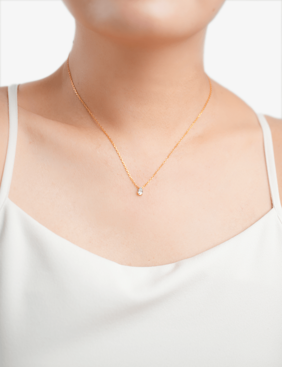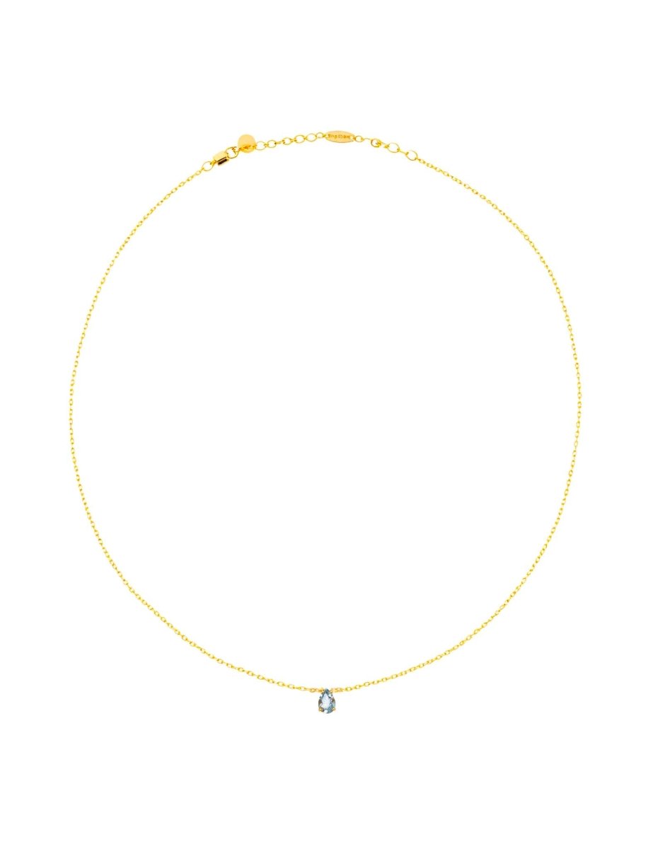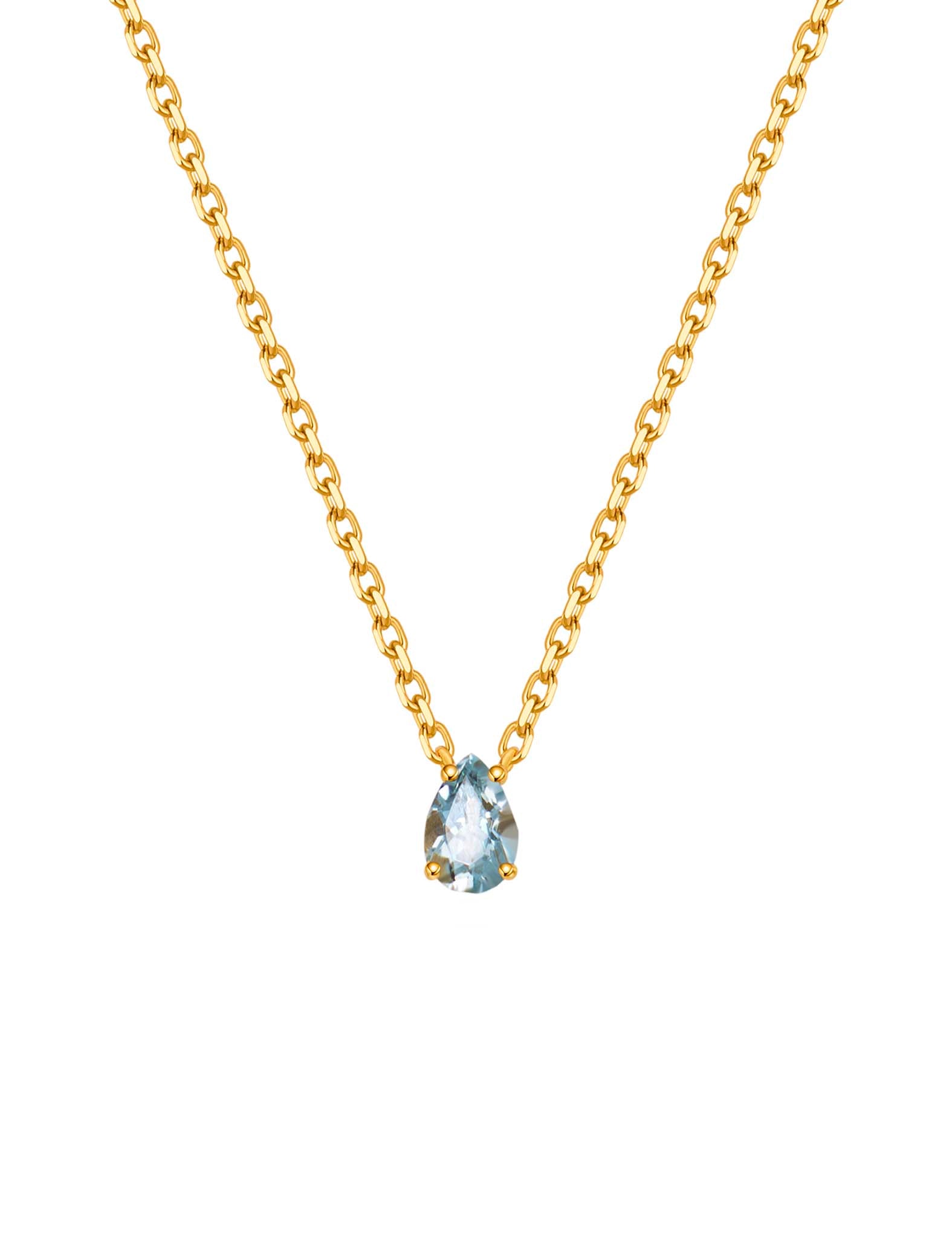 Celebrate March with timeless elegance. This necklace features a pear-cut aquamarine (0.35ct) hand-set in gold-plated S925 sterling silver. Its serene blue tones symbolize courage, calm, and clarity. Designed for daily wear, it sits gracefully on its own or layers effortlessly with other pieces for a personal, meaningful look.