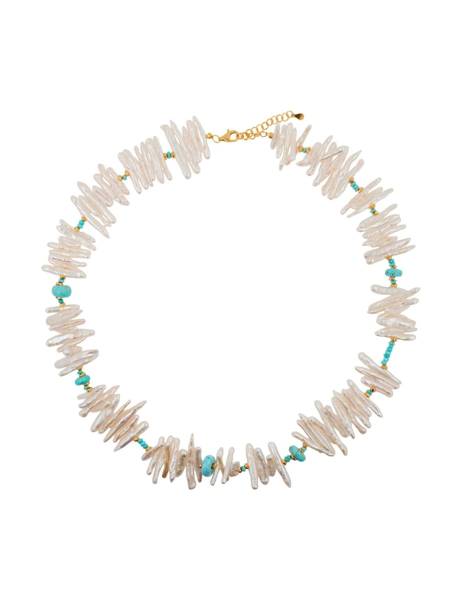BEAMMORE Turquoise & Biwa Pearl Beaded Gold-Plated Sterling Silver Necklace – Beaded Gemstone Jewelry