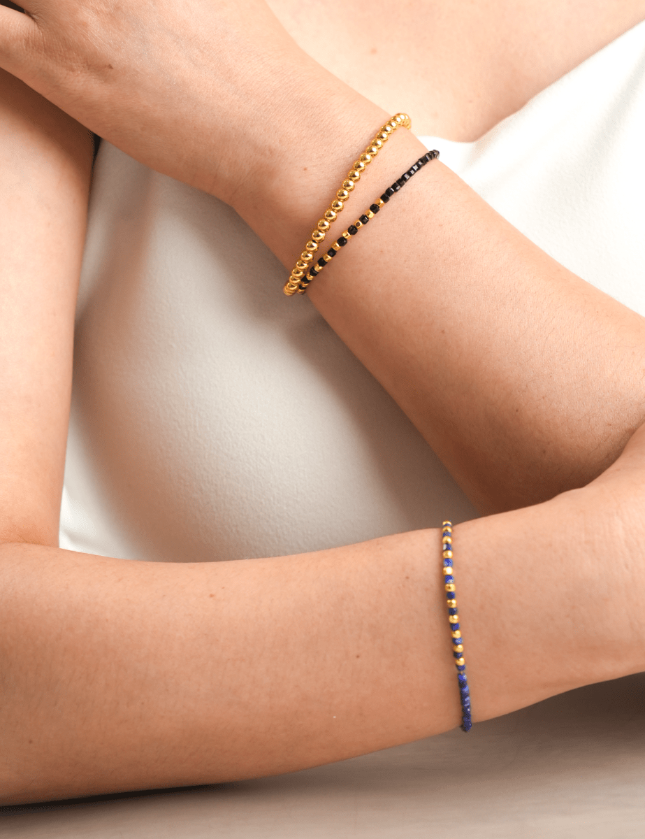 This faceted lapis lazuli bracelet channels inner wisdom and quiet strength through its deep celestial hue.