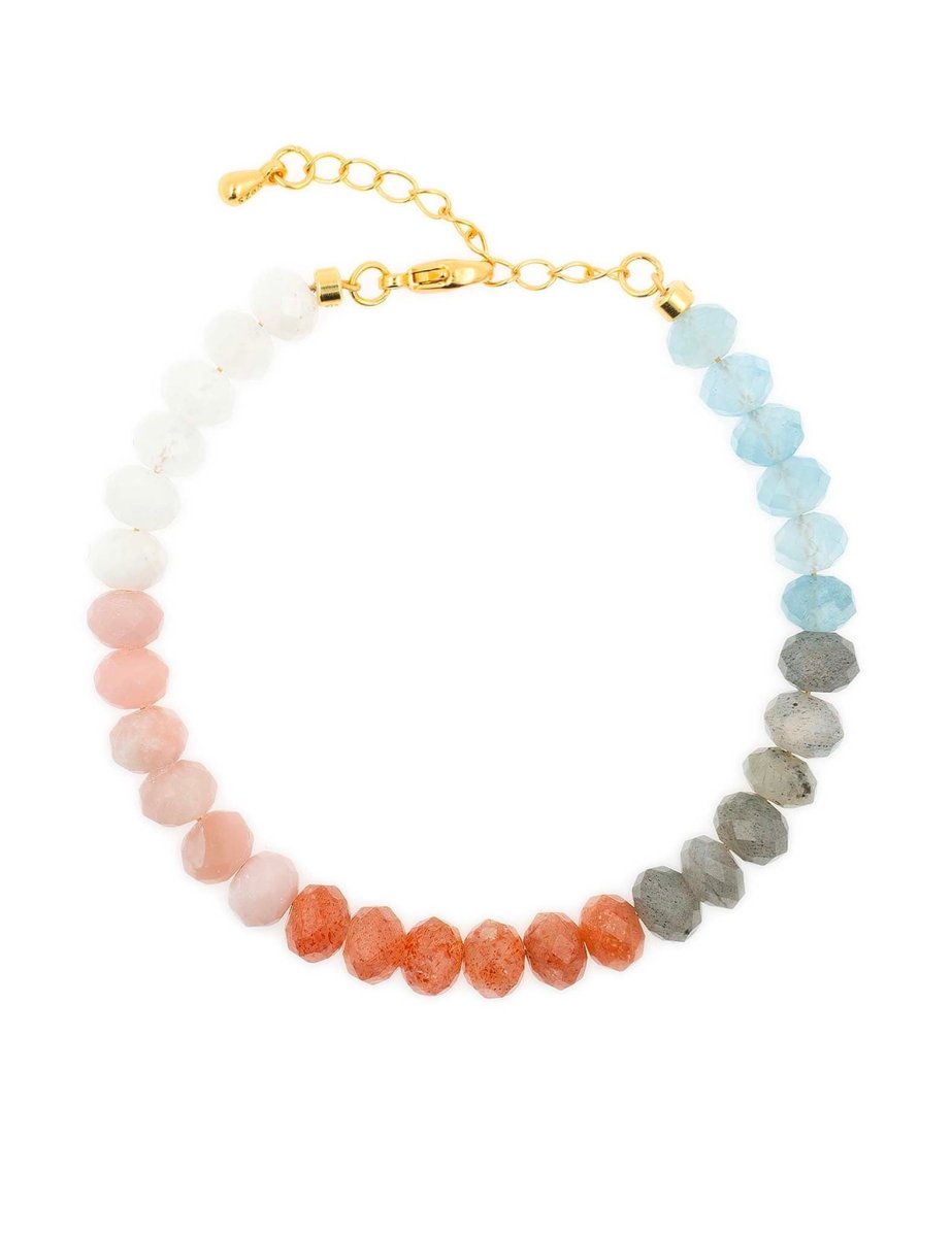 BEAMMORE Moonstone, Pink Opal, Sunstone & Aquamarine Beaded Sterling Silver Bracelet – Beaded Gemstone Jewelry