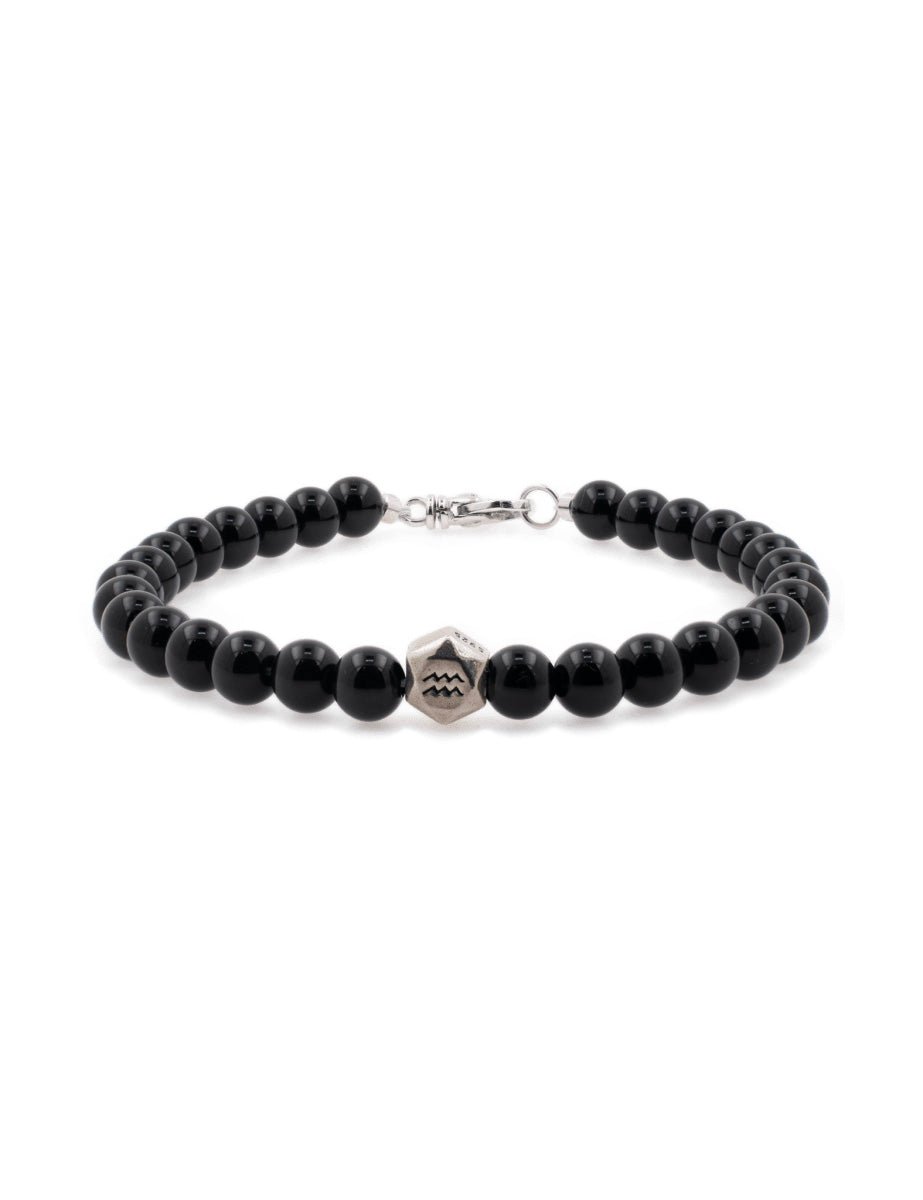 Black Onyx Bracelet with Sterling Silver Zodiac 6mm for men– Strength & Grounding