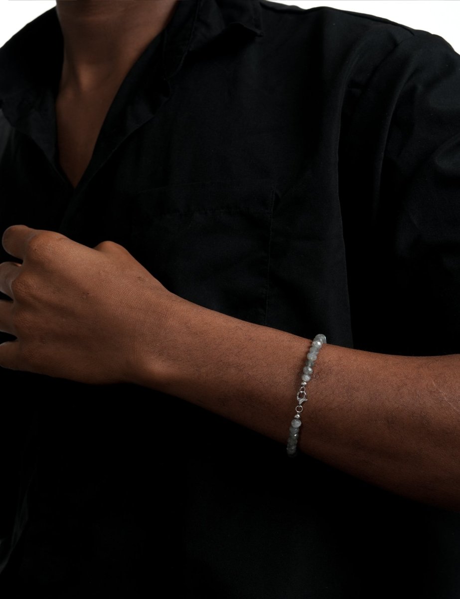 Grey Moonstone Faceted Bracelet 4x6mm for Men–Spiritual Growth & Balance