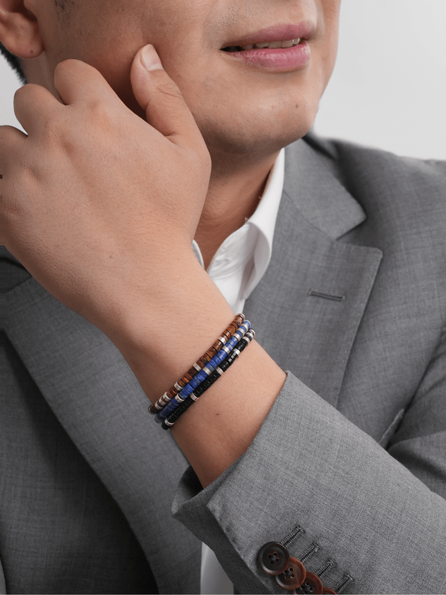 Bold, modern, and full of intention. The Men’s Collection is built on the idea that every man carries energy. Each bracelet combines powerful gemstones with refined design, bringing together strength, confidence, and authenticity. From Tiger’s Eye for success, to Onyx for grounding, to Lapis for wisdom, every stone tells a story of power and meaning. With versatile cuts, rich colors, and timeless finishes, these designs move easily from one moment to the next, crafted for men who want jewelry that feels as strong and enduring as they are.