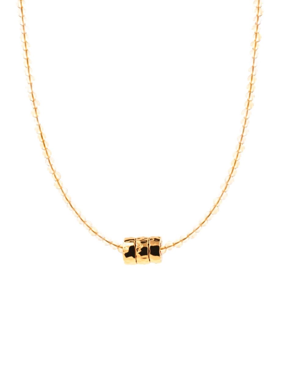 Simple yet full of spirit, this dainty necklace features golden citrine beads paired with multiple gold-plated S925 sterling silver nuggets in an artisan-inspired hammered texture, secured with a matching clasp. Citrine radiates joy and positivity, making it the perfect everyday boost of sunshine.