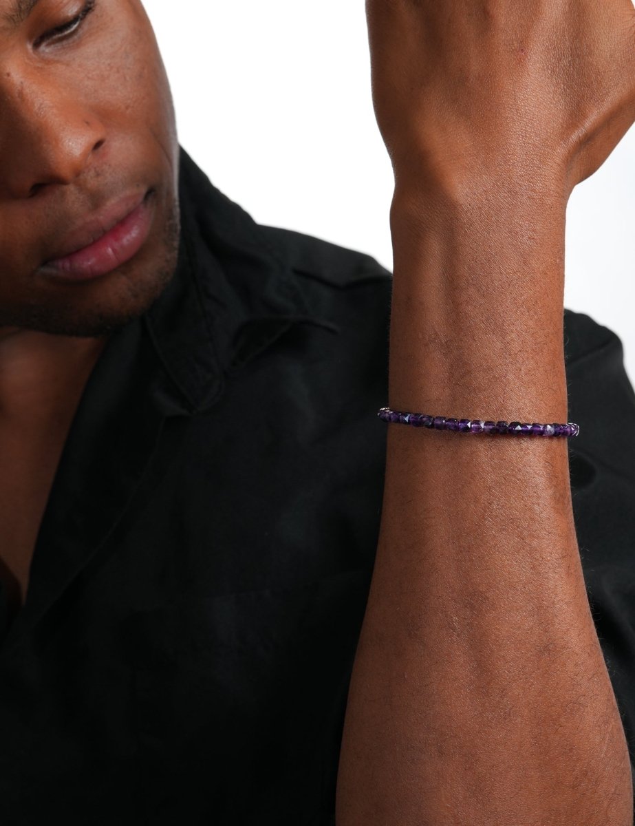 Amethyst Faceted Bracelet 4x6mm for Men–Spiritual Growth & Inspiration