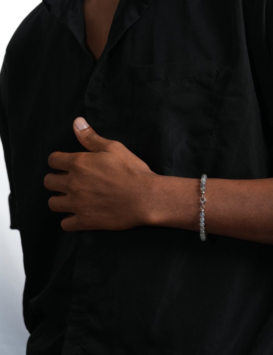 Designed for men who carry energy and intention in everything they do, this bracelet blends powerful Grey Moonstone with refined craftsmanship.