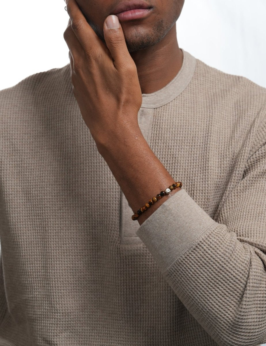 Tiger’s Eye Bracelet with Sterling Silver Zodiac 6mm for men– Confidence & Success
