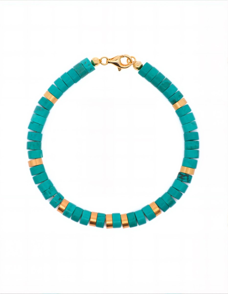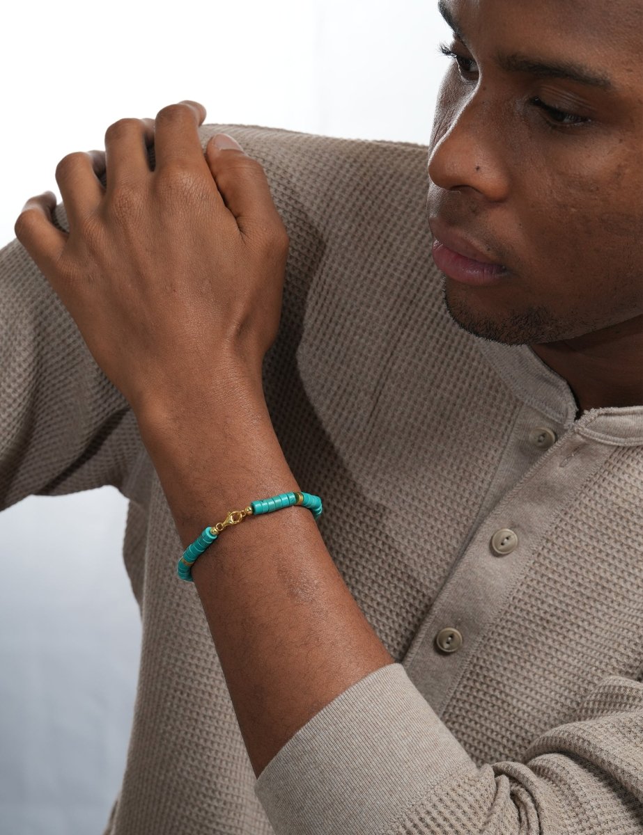 Turquoise Gold-Plated Faceted Bracelet 6x2mm for Men–Healing&Health