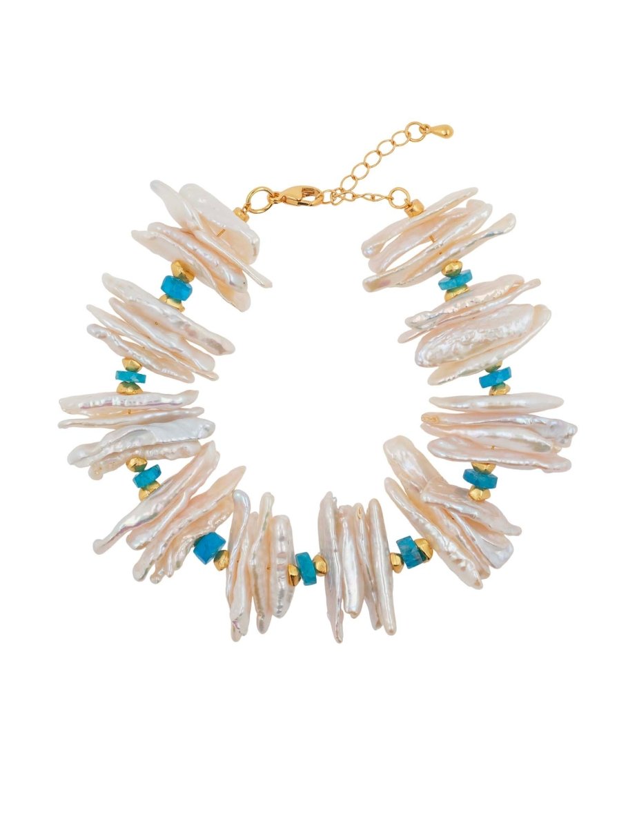 The AURA DUO Blue Apatite Biwa Pearl Bracelet combines the spiritual clarity of blue apatite with the natural elegance of Biwa pearls. Paired with delicate spacer beads, this bracelet enhances personal growth, emotional healing, and inner strength. The harmonious blend of blue apatite’s energy and Biwa pearls` calming effect creates a powerful tool for transformation and connection.