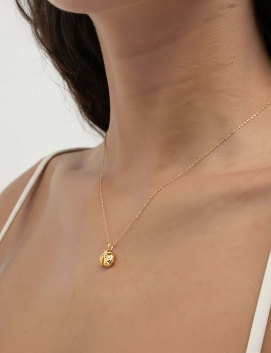 A tiny ladybug charm that feels cheerful and giftable—an everyday smile. Gold-plated sterling silver, handmade in Thailand for easy stacking.