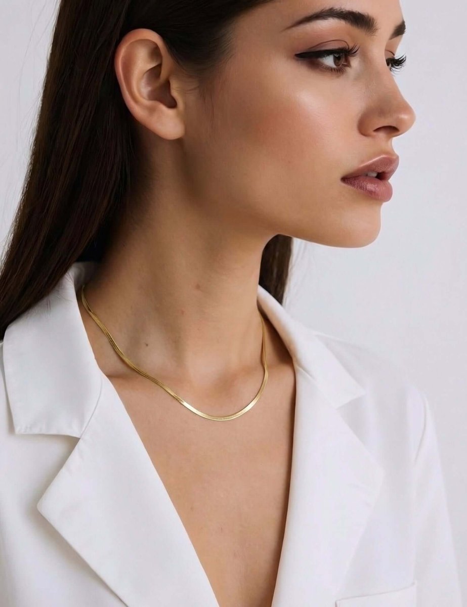 BEAMMORE 2.0mm Herringbone Chain Necklace in 18K Gold-Plated 925 Sterling Silver – Fine Jewelry