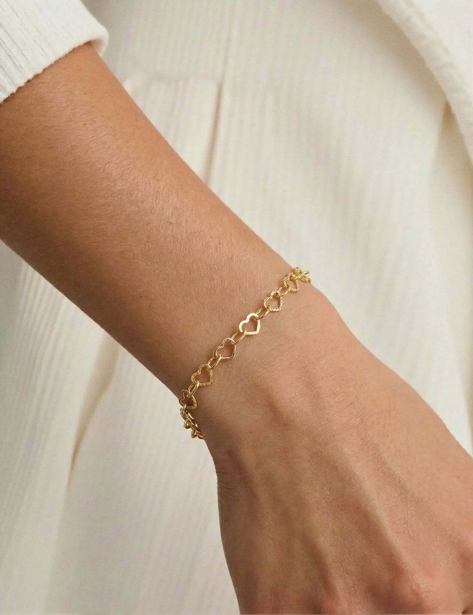 A refined heart-link bracelet that adds a gentle accent—perfect for stacking or wearing on its own. Made in Italy in gold-plated 925 sterling silver.