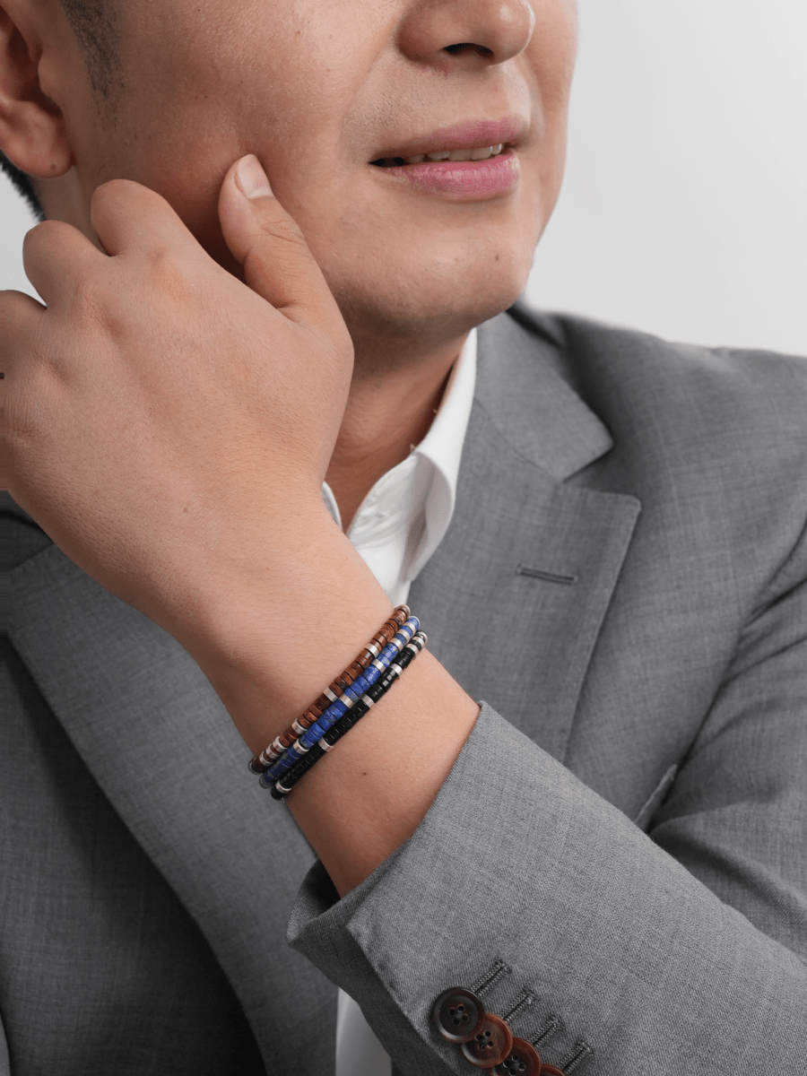 Bold, modern, and full of intention. The Men’s Collection is built on the idea that every man carries energy. Each bracelet combines powerful gemstones with refined design, bringing together strength, confidence, and authenticity. From Tiger’s Eye for success, to Onyx for grounding, to Lapis for wisdom, every stone tells a story of power and meaning. With versatile cuts, rich colors, and timeless finishes, these designs move easily from one moment to the next, crafted for men who want jewelry that feels as strong and enduring as they are.