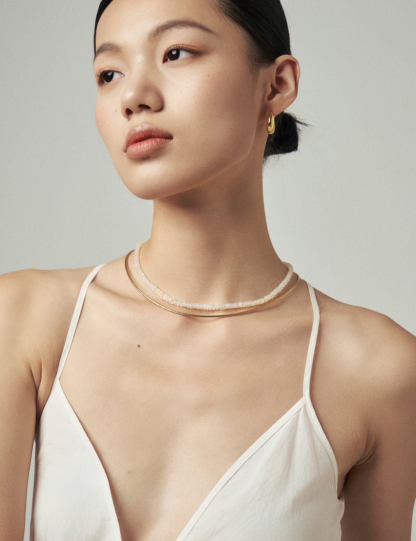 Model wearing BEAMMORE opal beaded necklace – Elegant birthstone jewelry gift for women