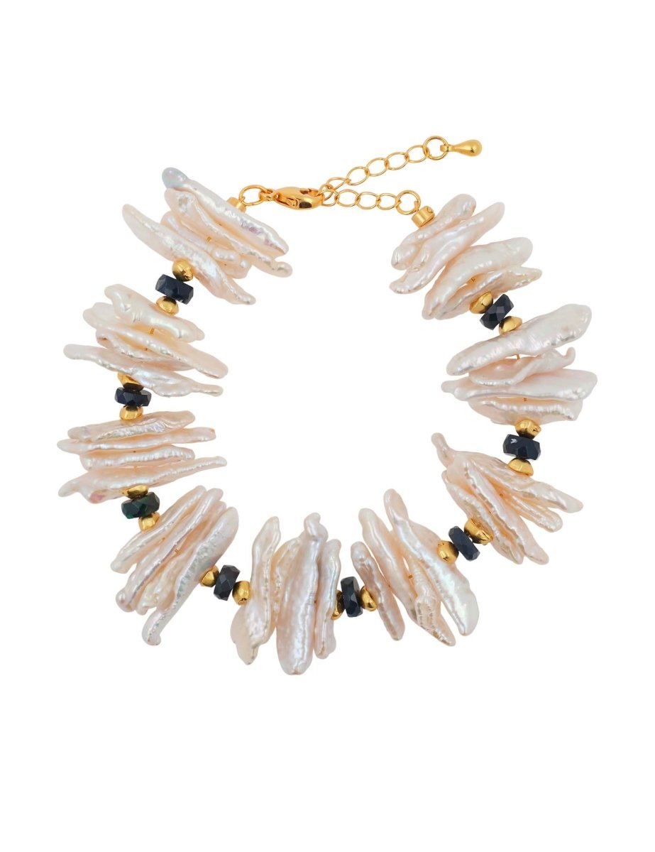 The AURA DUO Black Opal Biwa Pearl Bracelet combines the mystic allure of black opal with the serene elegance of Biwa pearls. Black opal, known for its emotional healing and transformation properties, pairs perfectly with the grounding and calming energy of Biwa pearls. The addition of delicate spacer beads enhances the bracelet`s overall design, making it both refined and meaningful. This bracelet is a harmonious balance of beauty and energy, a perfect reminder to embrace change and inner peace.