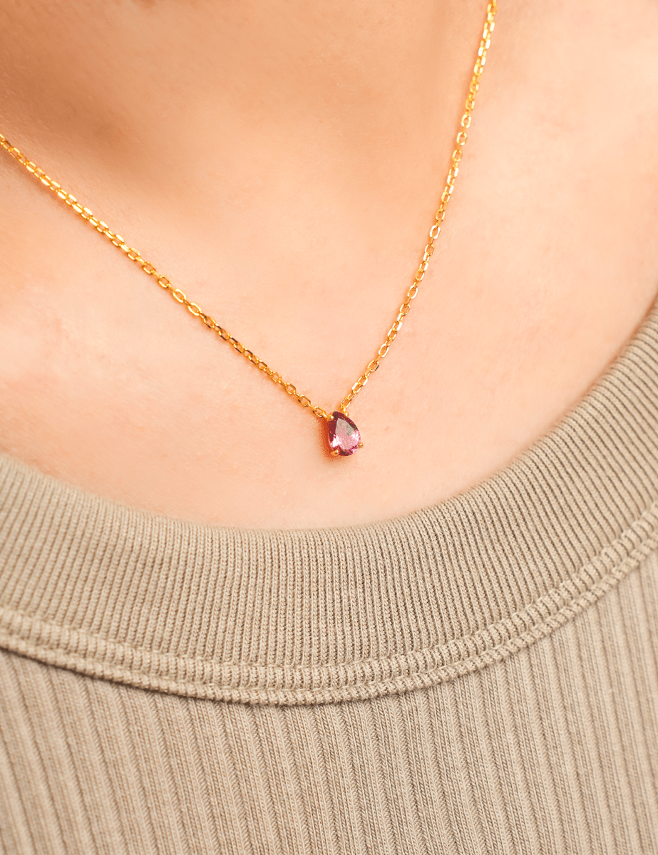 Celebrate October with timelessCelebrate October with timeless elegance. This necklace features a pear-cut pink tourmaline (0.45ct) hand-set in gold-plated S925 sterling silver. Its delicate pink glow symbolizes love, compassion, and emotional healing. Designed for daily wear, it sits gracefully on its own or layers effortlessly with other pieces for a personal, meaningful look.