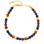 Zenith Pulse Faceted Bracelet with Spacer Beads worn on wrist, showcasing vibrant black onyx, cinnabar, and lapis lazuli.