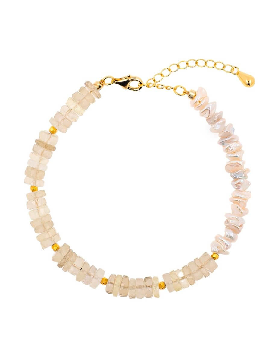 A petal pearl with a soft glow, finished with citrine for a warm golden accent. Citrine is traditionally associated with joy, confidence, and abundance—a light, easy piece that shines beautifully in the sun.