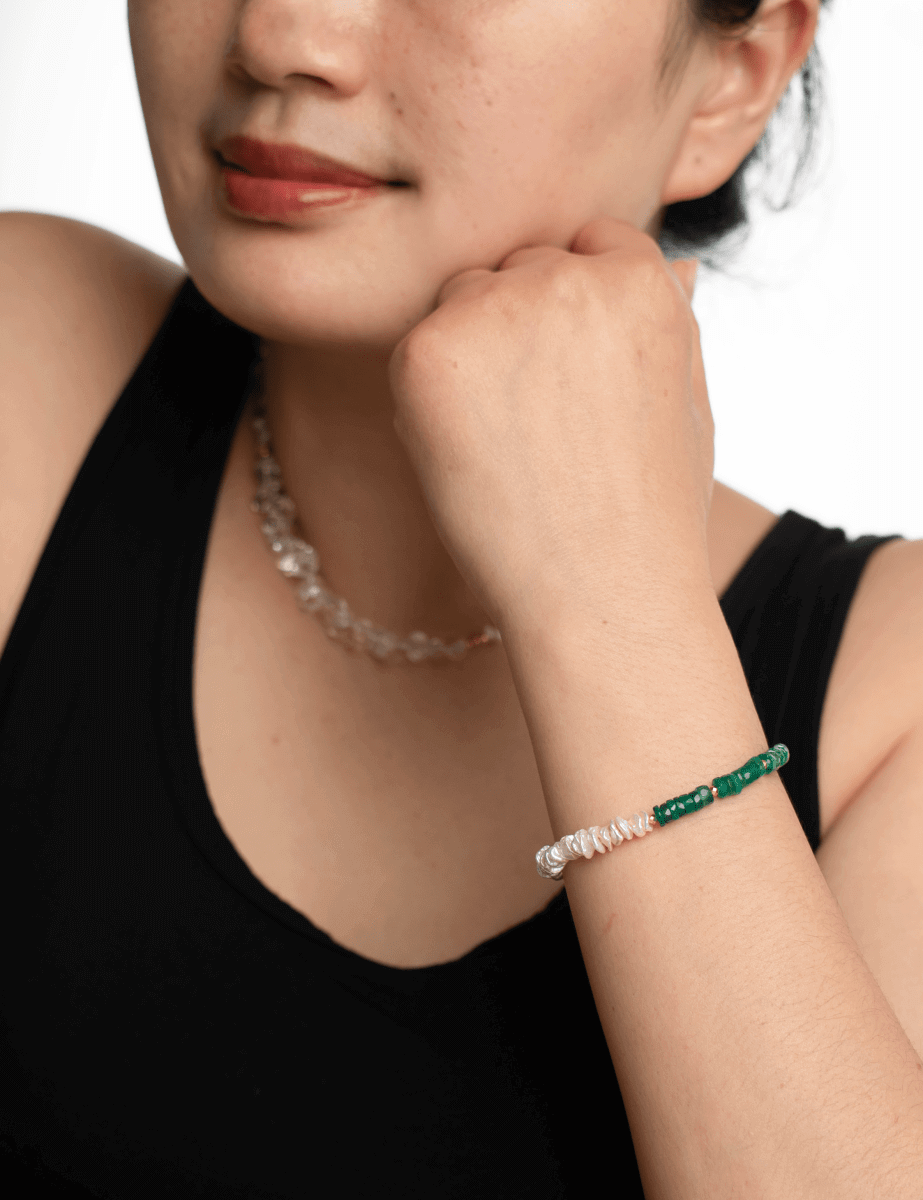 AURA DUO Green Agate Pearl Bracelet