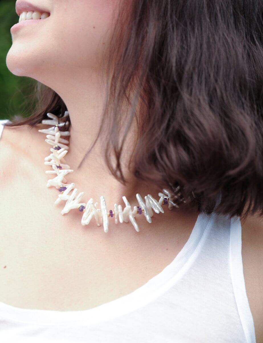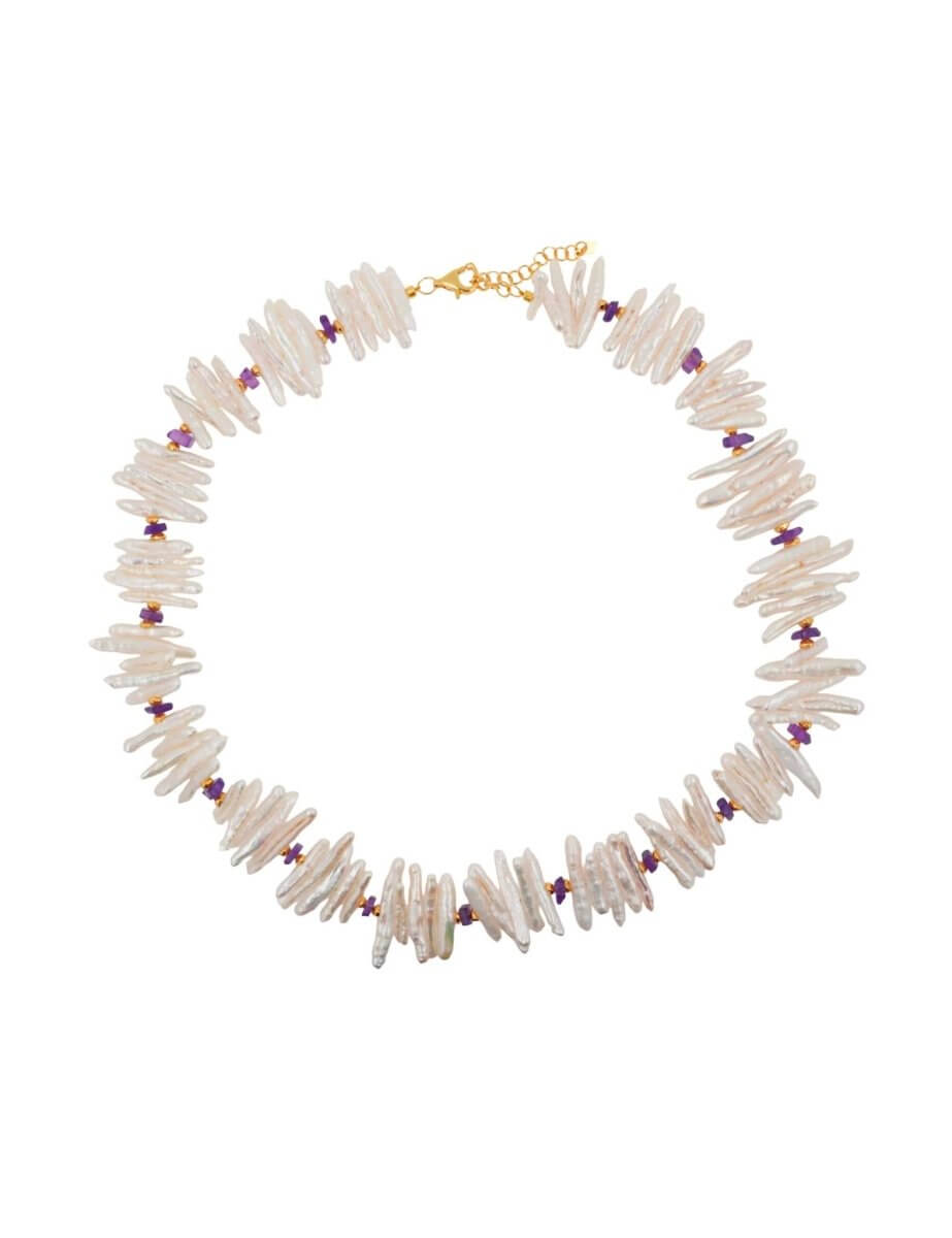 AURA DUO · Amethyst Biwa-Style Pearl Necklace