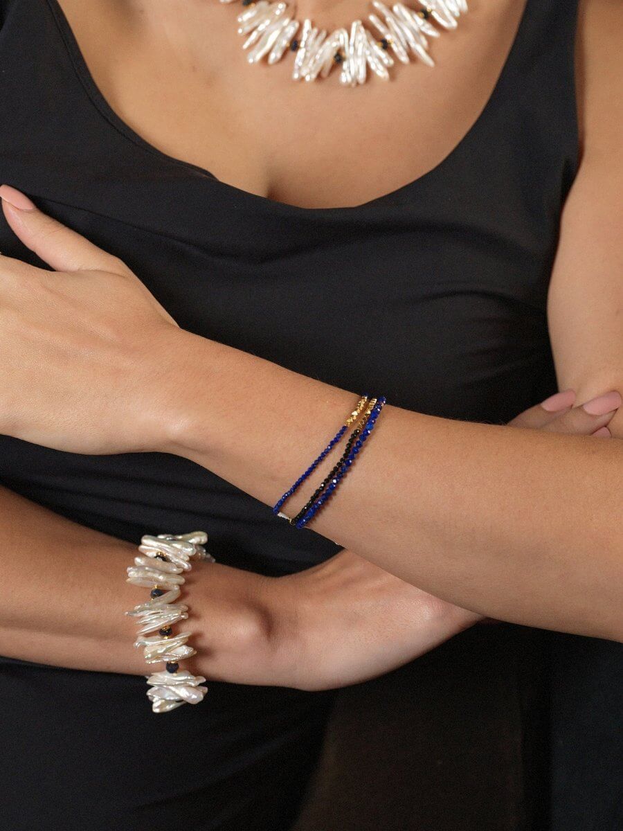 AURA DUO Black Opal Biwa-Style Pearl Bracelet
