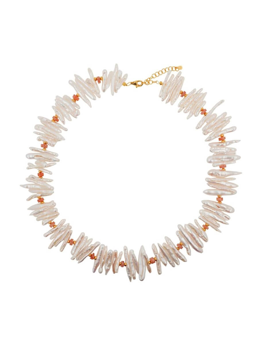 Warm, glowing, and full of life. Biwa-style stick pearls bring sculptural presence, paired with sunstone for a soft peach-gold sparkle. Traditionally associated with joy and confidence, this necklace adds instant warmth and energy—perfect for celebrations, summer nights, and feeling your best.
