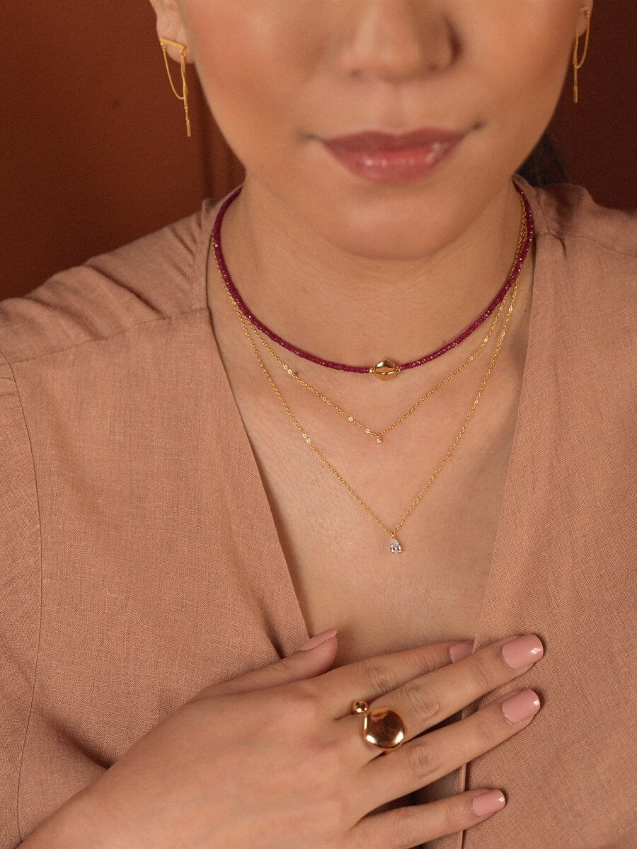 Bold ruby beads, refined by solid 18K gold. A classic red that feels powerful but polished—made for confidence, celebration, and meaningful gifting.